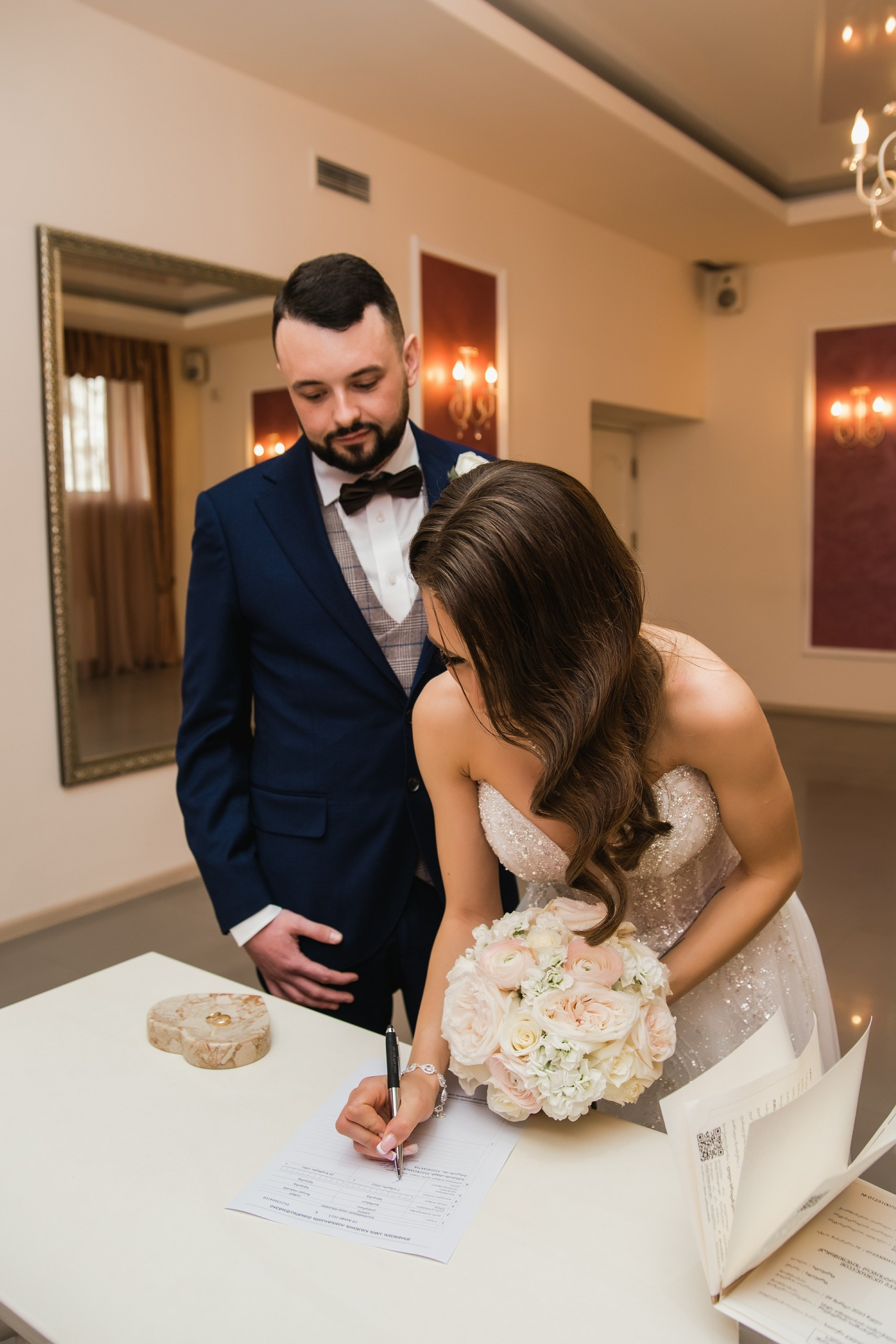 После церемонии вы получаете официальное свидетельство о браке и наши координаторы его ненадолго забирают, чтобы вручить позже с международными штампами и переводами.